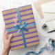 Patrón de rayas violetas de color violeta de lavanda contemporánea sobre un falso fondo de papel estilo kraft marrón. Diseños modernos pero sencillos, sencillos y caprichosos para envolver esos divertidos regalos de cumpleaños o sorpresas. Diseño ornado, elegante, elegante y ecléctico para el artesano artístico de la cadera, amante del estilo retro vintage del arte. Disponible en una variedad de artesanías modernas y productos de oficina. Tales como embalajes y papel tisular, etiquetas de regalo, bolsas y cajas de favores, pegatinas, cintas, papel y sobres.