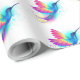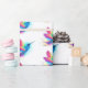 Colibrí luminoso, irrisorio, exótico volador sobre fondo blanco, pintado con pintura multicolor, acuarela. Colibrí arcoiris.