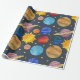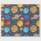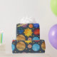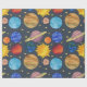 A bright, playful pattern featuring watercolor planets and stars on a dark background. Made to feel fun and full of cosmic energy.