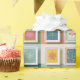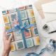 Framed, colorful snowflakes sparkle against a soft pastel patchwork background. Each snowflake is uniquely styled, adding whimsy and warmth to this cheerful winter design—perfect for festive décor, seasonal wrapping, and cozy holiday accents.