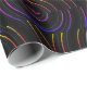 Decorar regalos o crear un divertido proyecto de artesanía DIY con este papel de envoltura único. El diseño presenta un colorido patrón de círculo abstracto geométrico angustiado sobre un fondo negro. Los colores de las líneas parecen casi neones en el fondo. Puede crear una decoración fresca en una sala de juegos o para envolver juegos. Diseño de Ms_Jade. © Ms_Jade