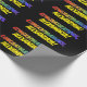 Este divertido diseño de papel de regalo presenta el mensaje "FELICIDADES", con los caracteres teniendo un patrón de color degradado inspirado en el espectro del arcoíris, junto con un nombre personalizado. Papel de regalo como este podría ser utilizado al envolver un regalo de felicitación para alguien.