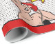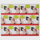 Este documento de envoltura tiene una mujer cómica retro llamando por teléfono para decir Feliz Cumpleaños en una burbuja de texto. El recorte es rojo y el fondo son pequeños puntos negros. Vea esto sobre suministros de fiestas, invitaciones y otros artículos.