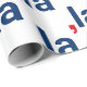 Pronunciación de la coma La kamala tipografía moderna color blanco rojo y azul patriótico papel de envolver regalo. Tipografía moderna de color rojo y azul sobre fondo de color editable en blanco.