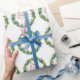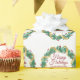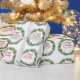 Este hermoso papel de envoltura de Navidades inmobiliarios está hecho personalizado con el nombre de tu compañía de propiedades bajo el nombre del agente en la tipografía verde y roja de moda dentro de una festiva corona de berry con guirnaldas doradas que envuelven alrededor del verde. Envoltura de regalo de vacaciones contemporáneas para el marketing de agentes este invierno.