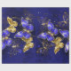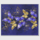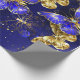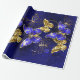 Composición de lujosas mariposas de zafiro y joyas de oro sobre fondo de textura azul.