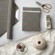 Este papel de envoltura, especialmente intrincado, presenta un patrón sofisticado que hace estragos en un control de tartán clásico con una rejilla geométrica de diamante. La paleta de colores es sobria y elegante, dominada por un fondo verde azulado sabio verde o polvoriento y líneas de fondo marino o carbón vegetal. En las intersecciones aparecen pequeños y sutiles acentos de color burdeos, lo que añade un toque de riqueza. Este diseño es perfecto para aquellos que aprecian un estilo masculino, vintage o sofisticado para los regalos que se dan durante las fiestas, aniversarios o celebraciones formales.
