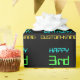 Este sencillo y divertido diseño de papel de envoltura de cumpleaños incluye un mensaje como "¡FELIZ tercer CUMPLEAÑOS, NOMBRE PERSONALIZADO!". También presenta un aspecto divertido inspirado en la computación digital y la programación de computadoras. El envolvimiento de papel como este podría ser usado cuando se le dan regalos a alguien que está celebrando su tercer cumpleaños, y a quien le gustan las computadoras y la programación de computadoras. [~Z0000264]