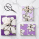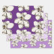 Hojas de papel de regalo con flores de magnolia. Impresión floral blanca, en varios tamaños, sobre lila y tonos de púrpura. Esta es una ilustración vintage con una belleza y semejanza única a la flor del árbol de magnolia del sur.