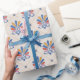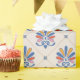 Papel de regalo floral Azulejo (azul, naranja, rosa). Diseño de patrón clásico y regio.