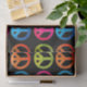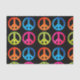 Señales de paz de neón brillante contra papel de tela de fondo negro.