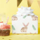 El patrón de acuarela de Destei que presenta un conejo marrón con orejas extra largas y por dentro rosadas está rodeado de hojas verdes y follaje botánico. El diseño repetido crea un aspecto inspirado en el bosque con tonos naturales y detalles pintados a mano. Perfecto para la primavera y la Pascua, este patrón inspirado en la naturaleza agrega un toque festivo y estacional a cualquier regalo.