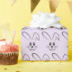 Cara de conejito de doodle con dientes grandes en un fondo púrpura pastel. Se puede cambiar el color de fondo.