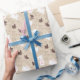 Hermosa envoltura de regalo para niños que sugeriría para una ducha de bebé de conejos blancos y mariposas marrones en un fondo bronceado. Podría ser usado también para Pascua.