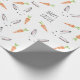 Las rostros y zanahorias de conejo cutáneo adornan este sencillo pero sincero documento de envoltura. Ideal para Pascua.