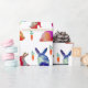 Conejos acuarelas en diversos colores, zanahorias, humor de Pascua, fondo personalizado.
