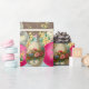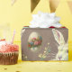 Divertido Conejo de Pascua, diseño floral vintage con flores amarillas y huevos rosas.