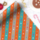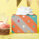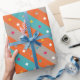 Agrega un toque de diversión geométrica a tus regalos con este vibrante papel de envolver. Franjas audaces de naranja y azul bailan junto a divertidos puntos de confeti en tonos de gris, creando una atmósfera festiva. Perfecto para cumpleaños, graduaciones o cualquier ocasión digna de celebrar.