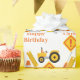 Un Amanecer Feliz encantador personalizado de la construcción de carreteras y el regalo del sitio de construcción papel de envolvimiento. Un diseño divertido con un tractor de obras, conos de tráfico, adjunto de grúa, señal de advertencia y otras herramientas. Personalizar cambiando Feliz Cumpleaños a otro evento, luego personaliza con un nombre. Hace un divertido papel de cumpleaños para envolver regalos y regalos de cumpleaños a los niños.