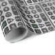 Dispositivo remoto de TV con botones de inserción negros, verdes y rojos.