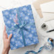 Elegante patrón de copo de nieve blanco sobre fondo azul.