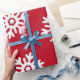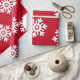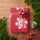 Copos de nieve blancos sobre Navidades de fondo rojo envolviendo papel.