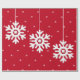 Copos de nieve blancos sobre Navidades de fondo rojo envolviendo papel.