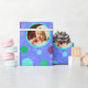 Papel wrappping del copo de nieve con el espacio para catorce fotos de familia preferidas. Fondo púrpura.