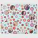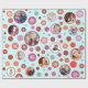 Papel wrappping del copo de nieve con el espacio para catorce fotos de familia preferidas. Fondo de la aguamarina.