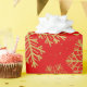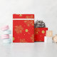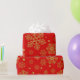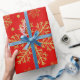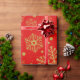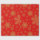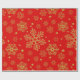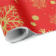 Diseño de navidades con copos de nieve dorados y estrellas de fondo rojo