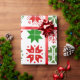 Este papel de envoltura tiene un diseño Navidad de diferentes copos de nieve en rojo y verde en filas.