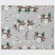 Papel De Regalo Copos de nieve plateados, bolas de algodón, Holly,