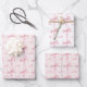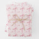 Hojas de papel de envolver coquette modernas y bonitas que presentan un patrón de lazo rosa pálido acuarela. Dos hojas tienen un fondo rosa pálido y la otra hoja tiene un fondo blanco. Este papel de regalo elegante es el toque final perfecto para un baby shower, una despedida de soltera o un regalo de cumpleaños. Combina con cualquier cosa de la colección BLYTHE para un look coherente.