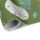 Papel de regalo de dólares de arena y coral marino en un rollo. Dólares de arena realistas blancos con forma de cerradura hacen un patrón junto con coral azul-verdoso y conchas marinas sobre un fondo verde oscuro salvia. Perfecto para celebrar un cumpleaños de adulto o envolver regalos de boda.
