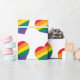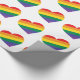 Este papel de envoltura presenta un patrón repetido de corazones de rainbow stripe sobre un fondo blanco. Muestra tus verdaderos colores, apoya el matrimonio igualitario y celebra el orgullo gay.