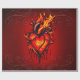 Corazón inflamante. El corazón estilizado donde la superficie del corazón está agrietada y muestra rastros de lesión y lucha, añadiendo una profundidad dramática a la imagen general. Las llamas parecen envolver el corazón, aumentando la impresión de energía y vitalidad. La combinación del corazón realista, las llamas dinámicas y la gota sangrienta crea una poderosa metáfora visual del amor, el dolor y la pasión.