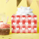Los corazones blancos sobre fondo de gingham blanco y rojo. Se puede cambiar el fondo.