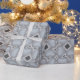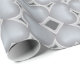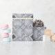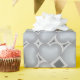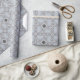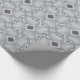 Este papel de envoltura presenta un patrón repetido de tejas de corazones de desvanecimiento de plata alrededor de un diamante central. Papel de envolver para bodas y regalos de aniversario de plata.