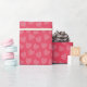 Patrón cardíaco sobre papel de envolver regalo de fondo rojo.