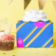 Papel De Regalo Corazones rosados en franjas doradas de fondo azul