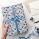 Papel De Regalo Corriente Roja y Negra, Hojas Azules Sobre Azul