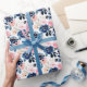 Discover this wrapping paper that embodies the perfect harmony of colors! Featuring a charming hand-painted country floral design, rich navy and deep turquoise shades intertwine with soft pastel pink and light blue hues, creating a stunning contrast against a crisp white background.