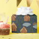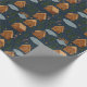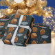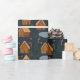 Wrap your gifts in a warm and charming gingerbread village pattern featuring cozy houses, pine trees, stars and snowy details.