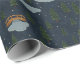Wrap your gifts in a calm and cozy winter forest pattern featuring pine trees, frozen lakes, and a small wooden bridge set against a deep night blue background.