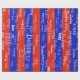 Un diseño de patrón patriótico (colores de EE. UU.) hecho con tu nombre repetido en diferentes estilos y tamaños de fuente en un fondo de grandes rayas rojas y azules