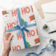 Papel De Regalo Crema verde rojo dramático árbol moderno de muñeco