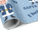 Creo en Safta Claus - Cute Chanukah Wrapping Paper. No importa si lo llamas Chanukkah, Hanukkah, Chanukah o Hanukah, este lindo papel de envoltura hace el regalo perfecto para un niño que llama a su abuela Safta en lugar de a su abuela. (Safta significa abuela o abuela en hebreo). Este gracioso artículo dice "Creo en Safta Claus", con una divertida foto de un Safta vestido como un Santa Claus azul y blanco.