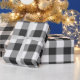 La mancha o cheque de búfalo está recubierta de bloques grandes formados por la intersección de dos hilados de color diferentes, uno de los cuales es típicamente negro. Cuadrados blancos y negros de verificación de búfalo