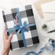 Papel de regalo Cuadro de Tartán Blanco Negro Retro Navidad Año Nuevo.