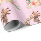 Papel envuelto con un lindo dibujo en acuarelas de una madre y una jirafa de bebé. La jirafa madre está descansando su cabeza sobre la jirafa del bebé, amorosa y adorable. un ramo de flores color agua rosa, amarillo, verde y colocado debajo de este querido par. Fondo de degradado creado con una mezcla de color rosa suave en color naranja color de color claro y color de color azul.